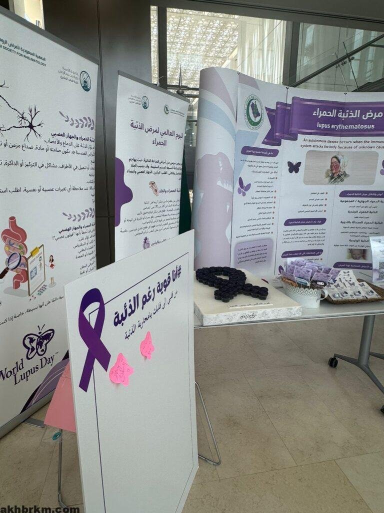 وتتضمن الفعالية رحلة تثقيفية في بهو الكلية، تحت إشراف الدكتورة فهيدة العنزي، بهدف زيادة الوعي بين المجتمع حول المرض، الذي يعد من أمراض المناعة الذاتية ويهاجم جهاز المناعة الأنسجة السليمة في الجسم.