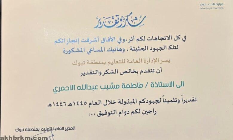 من جهتها، تتقدم صحيفة “أخباركم” بخالص الشكر والتقدير للإعلامية فاطمة الأحمري على عطائها وجهودها الملموسة، متمنين لها مزيدًا من التميز والنجاح في مسيرتها الإعلامية.