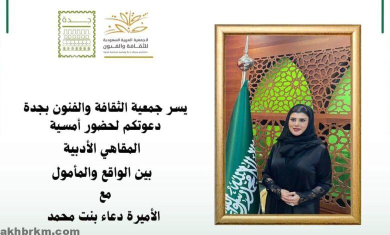 جمعية الثقافة والفنون بجدة تنظّم أمسية أدبية حول المقاهي الثقافية برعاية الأميرة دعاء بنت محمد